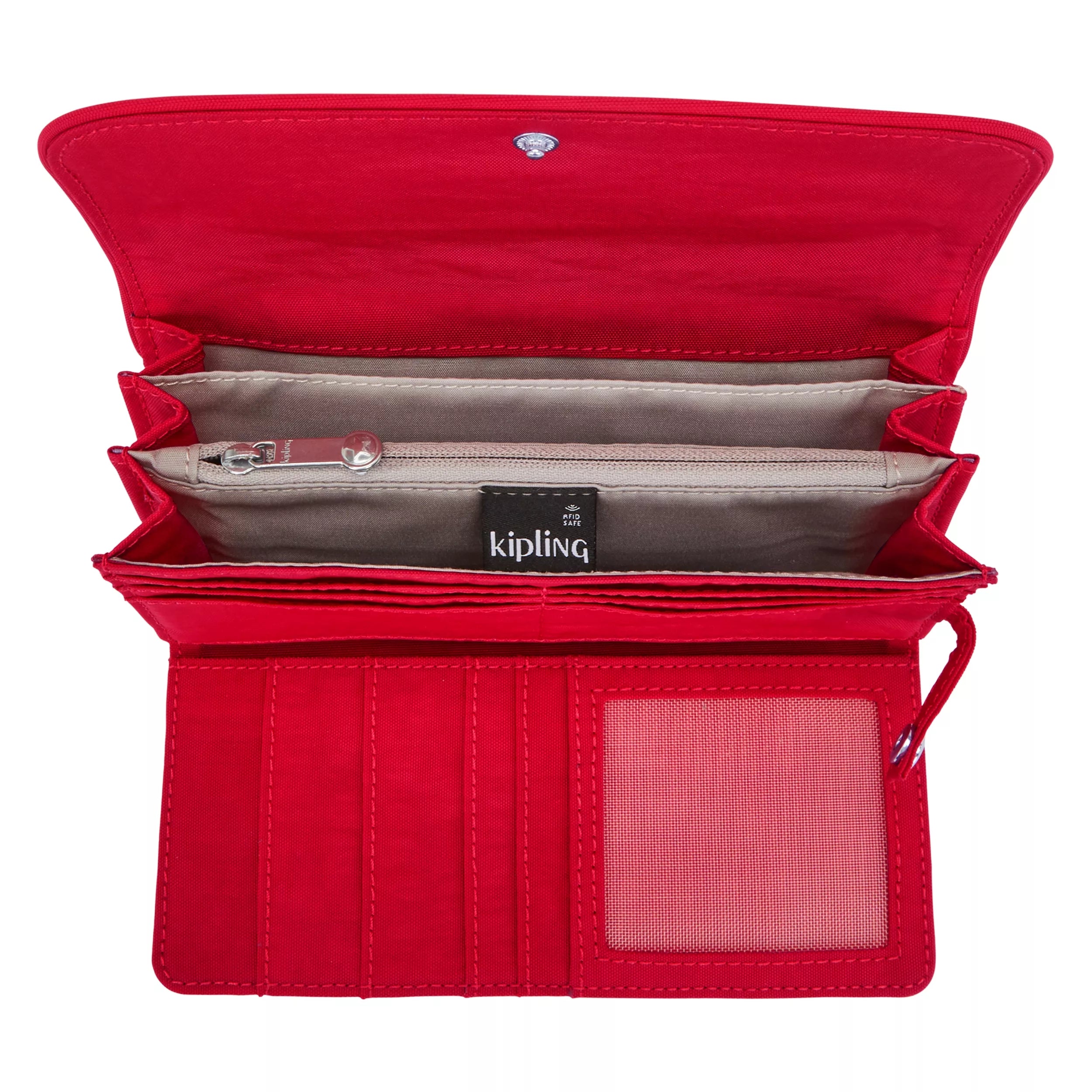 Money Land is a RFID wallet packed with space and multiple compartments for optimal organization! Adorned in durable nylon. this wallet features cash compartments. ten credit card slots. an interior zip pouch. and an ID slot for your driver’s license or work ID. The snap button closure is designed to keep your essentials safe and secure. making it a must-have wallet for travelers and anyone who is always on-the-go. RFID technology prevents hackers from skimming data wirelessly by creating a virtual shield to protect your chipped cards.